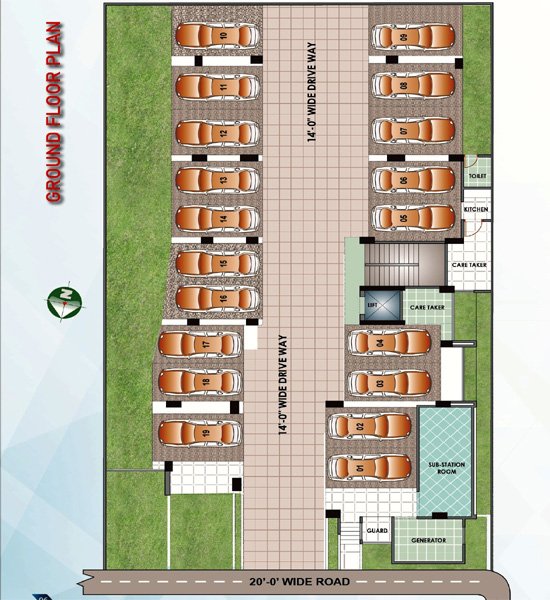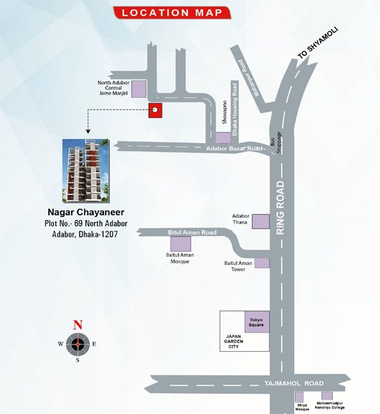 Flat Size: Type-A: 1385 sft., Type-B: 1335 sft., Type-C: 1250 sft., Type-D: 1225 sft.