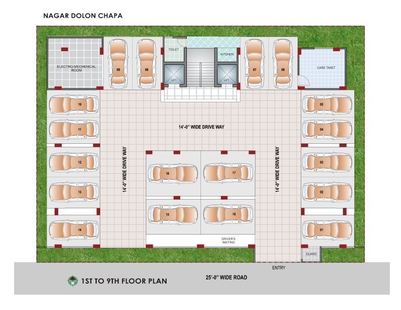 Ground Floor + 9 ( 10 Storied Residential Building).